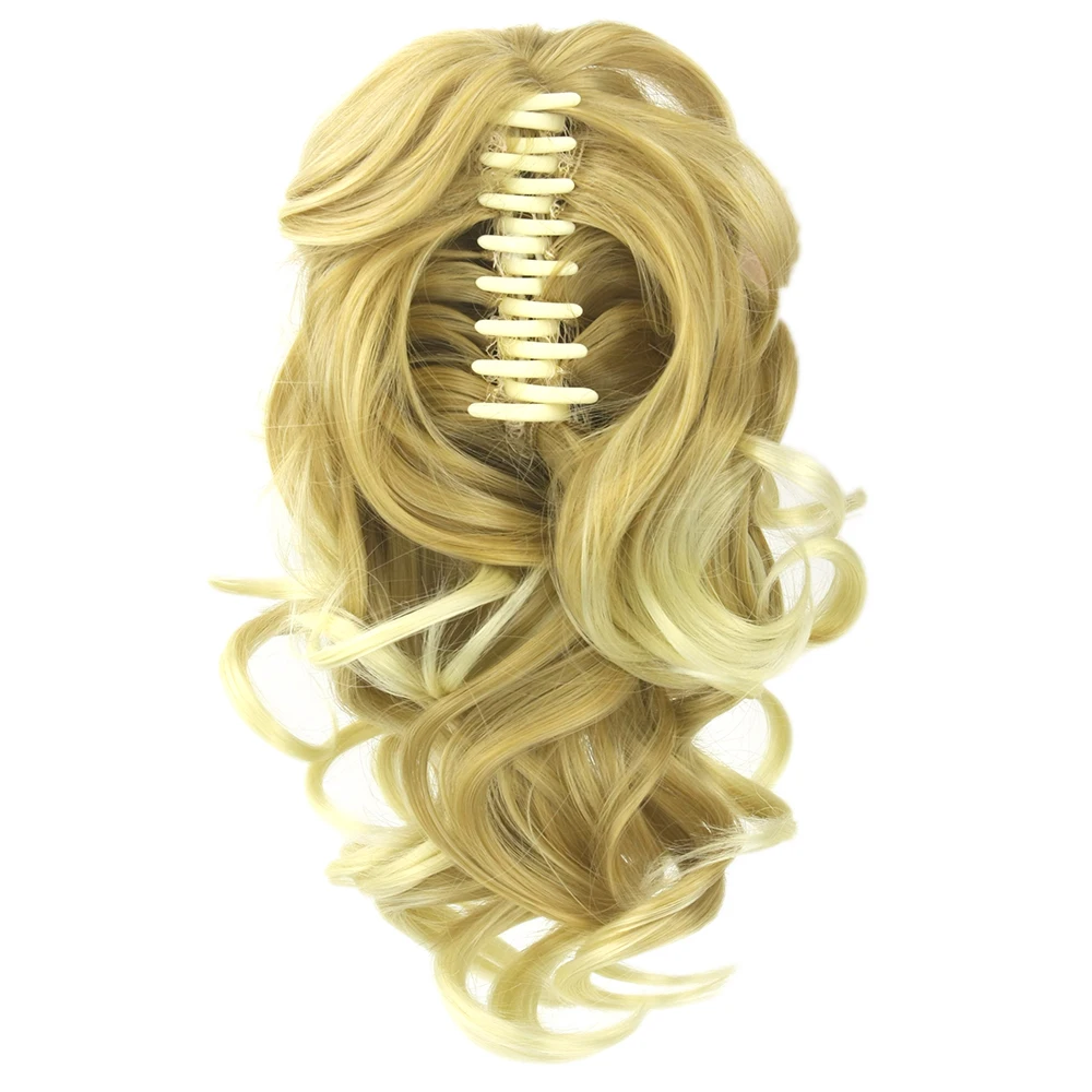 Soowee 180g Long Blonde Curly Clip In Hair Extensions Pieces Pony Tail High Temperature Fiber Synthetic Hair Claw Ponytail