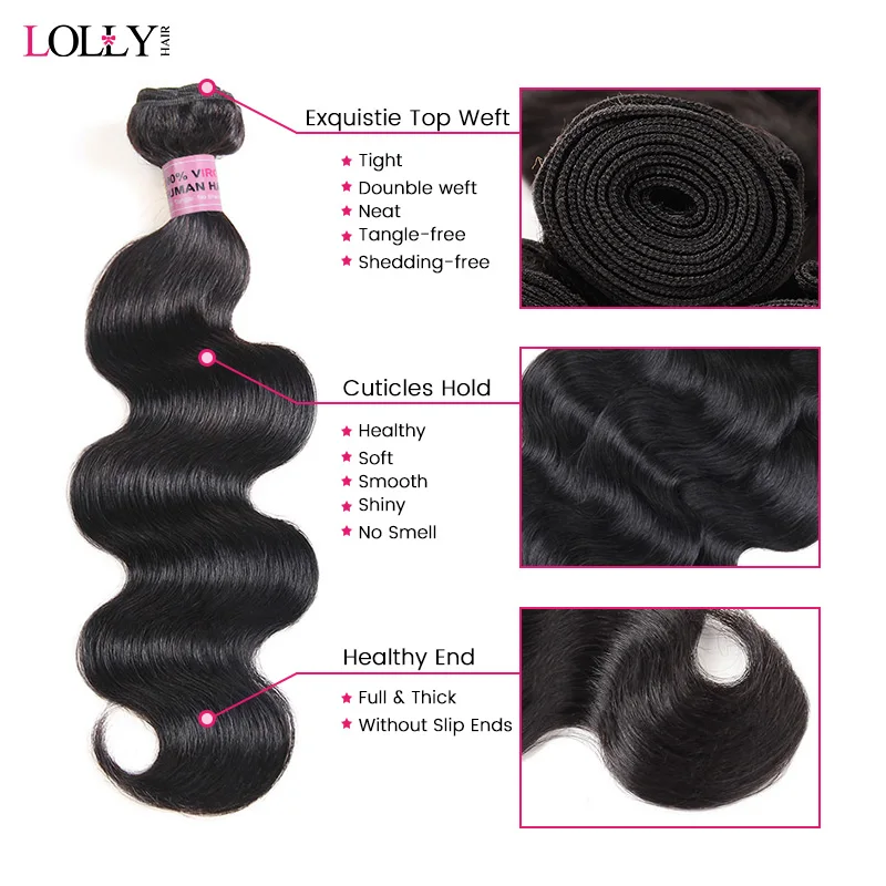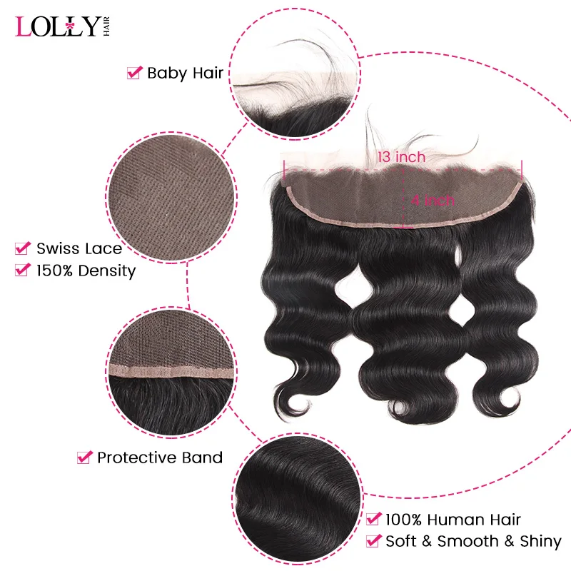 - Product name : Lolly 13x4 Frontal with Bundles Middle Ration Brazilian Human Hair Body Wave Lace Closure With Bund