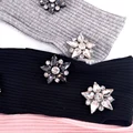 Vintage Black Rhinestones ribbed Headbands For Women ladies Solid color Soft Stretch Cotton Head Wrap Bands Party turban Gifts
